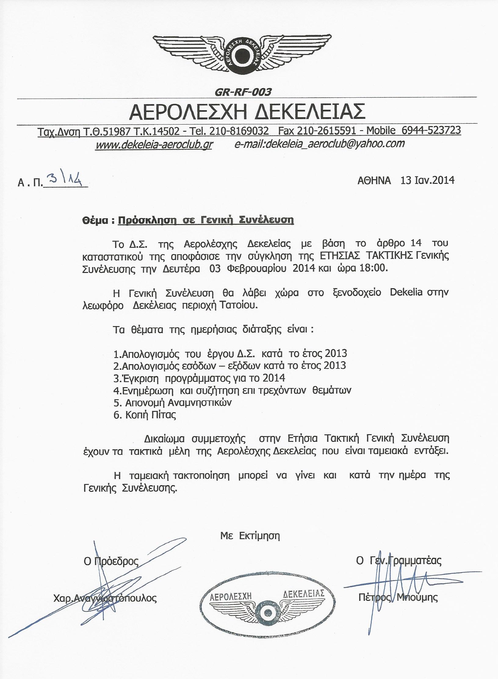 Την Δευτέρα 3 Φεβρουαρίου θα πραγματοποιηθή η ετήσια γενική συνέλευση και η κοπή πίττας