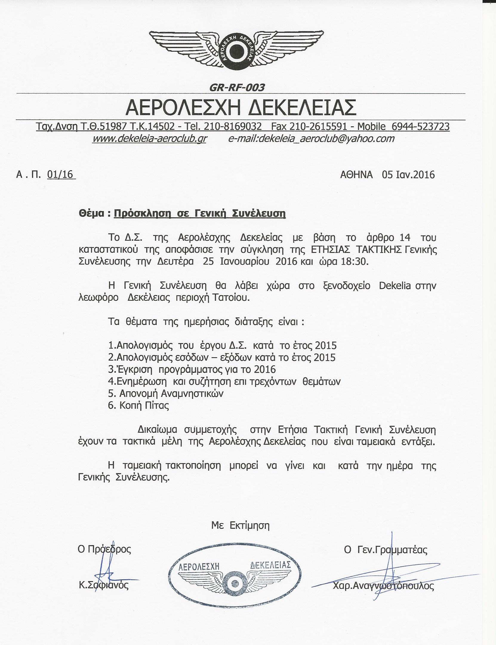 Όπως κάθε χρόνο έτσι και αυτή τη χρονιά η ετήσια γενική συνέλευση και κοπή της πίτας θα γίνει στο ξενοδοχείο DEKELIA σας περιμένουμε όλους εκεί.
